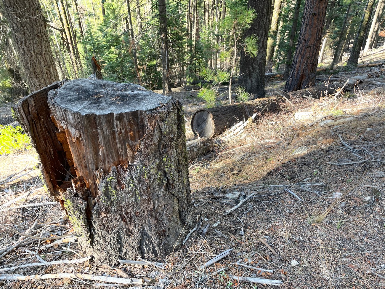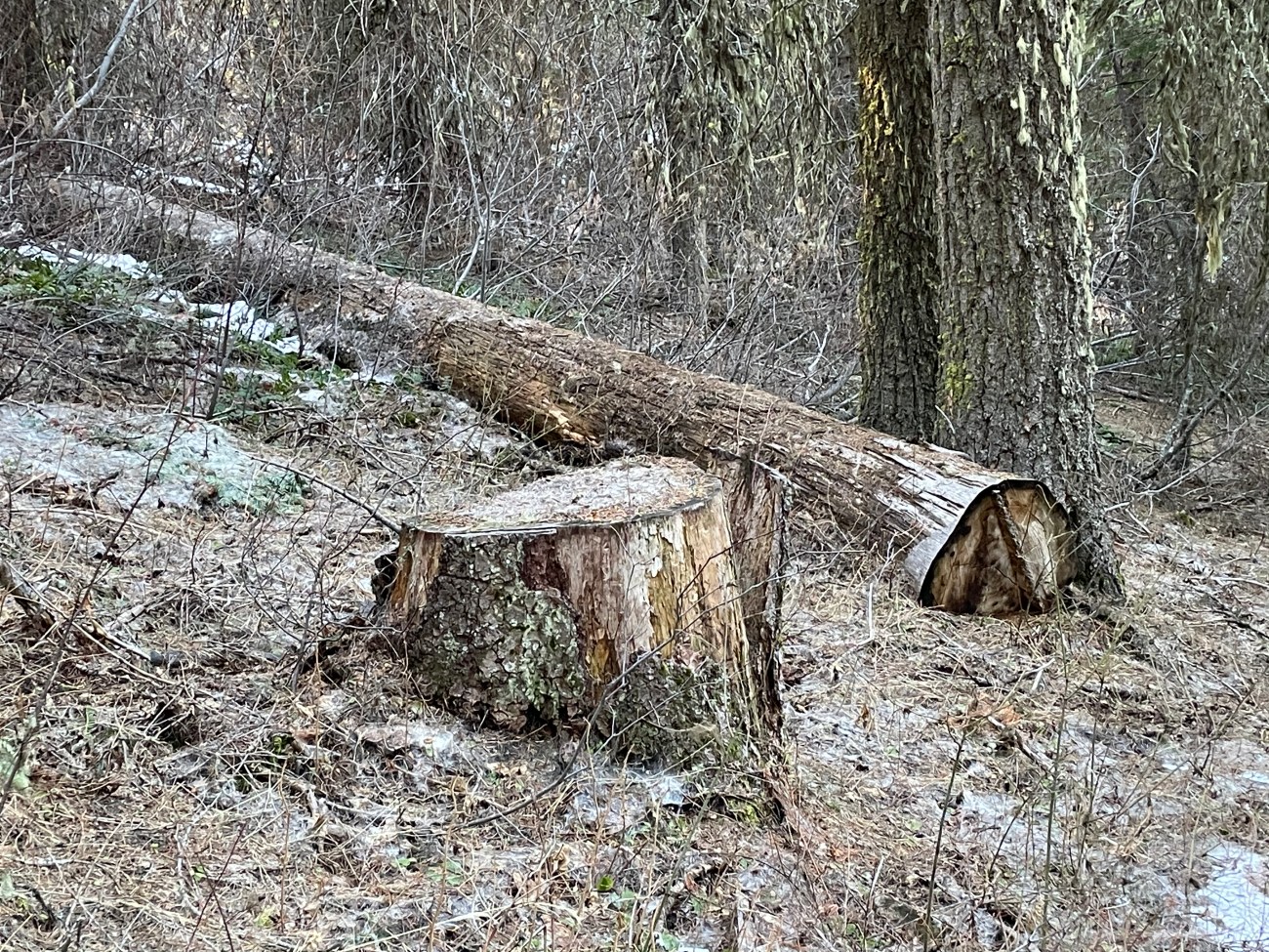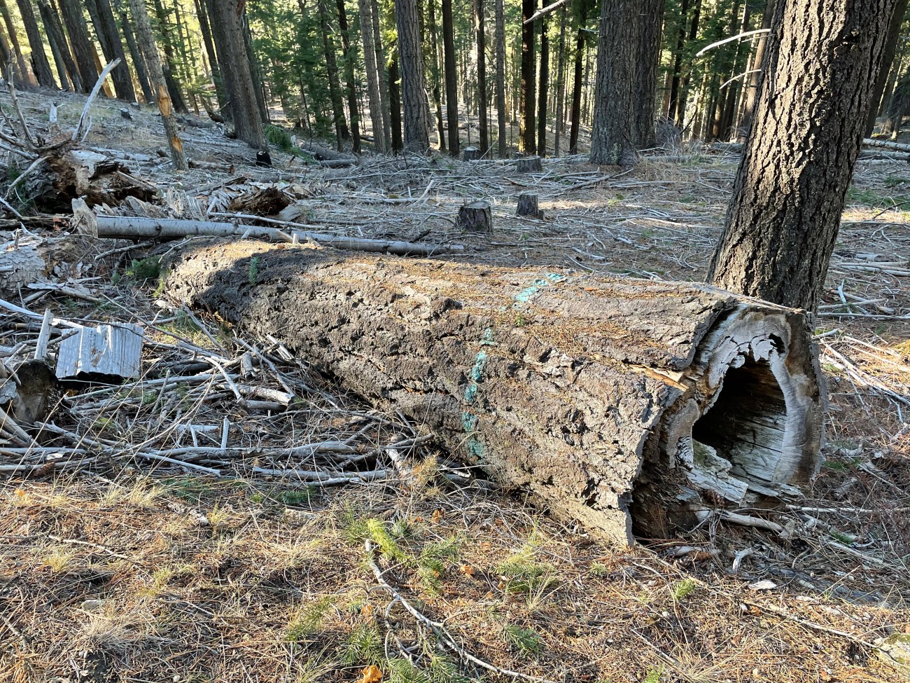 I live in Oregon where more than half of the 11,000 Endangered Spotted Owls live. We have one mile of road for every square mile of Federal land. Staff comb these areas to cut large snags. Above are just a few of the snags cut in Southern Oregon. Fuel reduction crews target large snags. I don’t trail run with a camera, so there are many more I have seen not shown here.