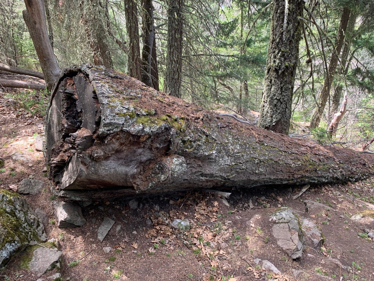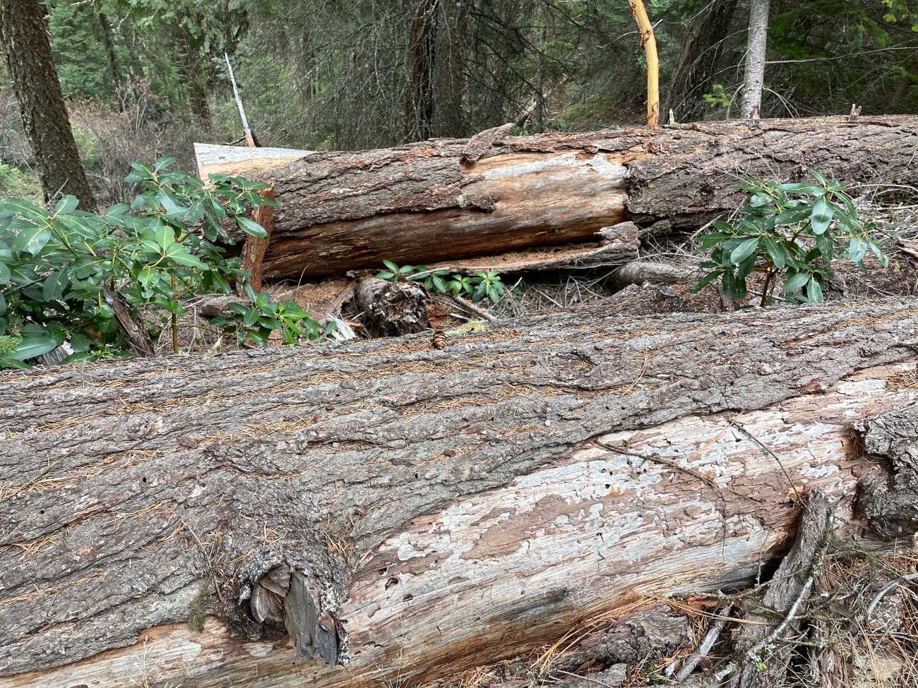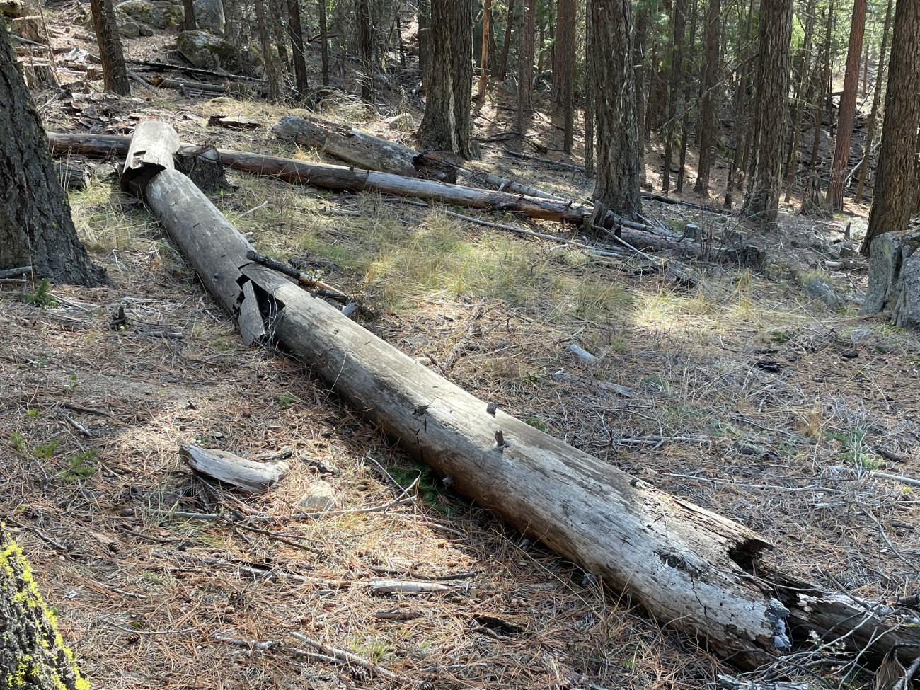I live in Oregon where more than half of the 11,000 Endangered Spotted Owls live. We have one mile of road for every square mile of Federal land. Staff comb these areas to cut large snags. Above are just a few of the snags cut in Southern Oregon. Fuel reduction crews target large snags. I don’t trail run with a camera, so there are many more I have seen not shown here.
